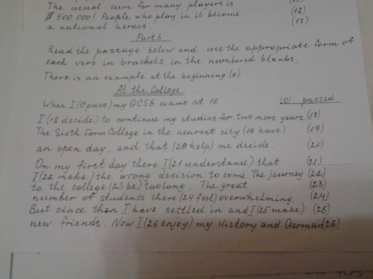 22 had made 23 was 24 felt 25 have made 26 am enjoying