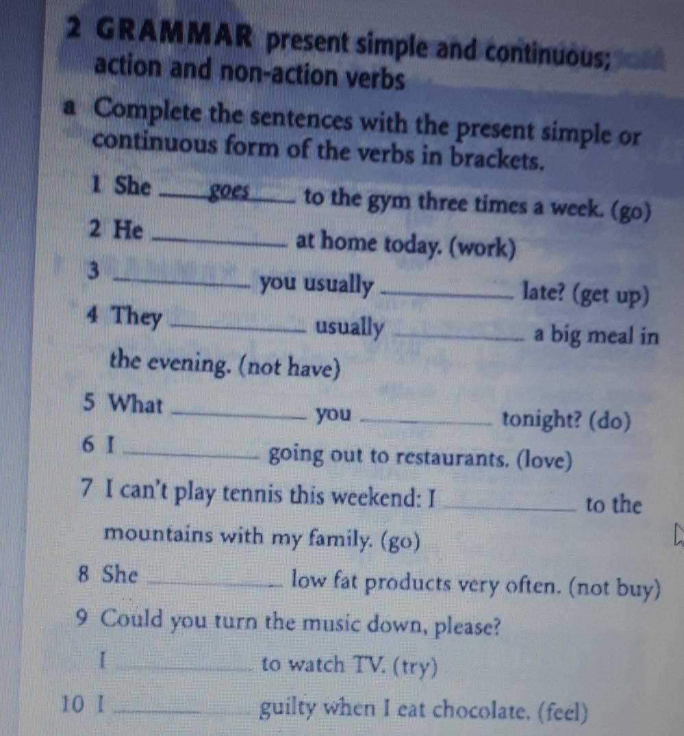 Complete the sentences with the present simpl or continuons form of the verbs in brackets