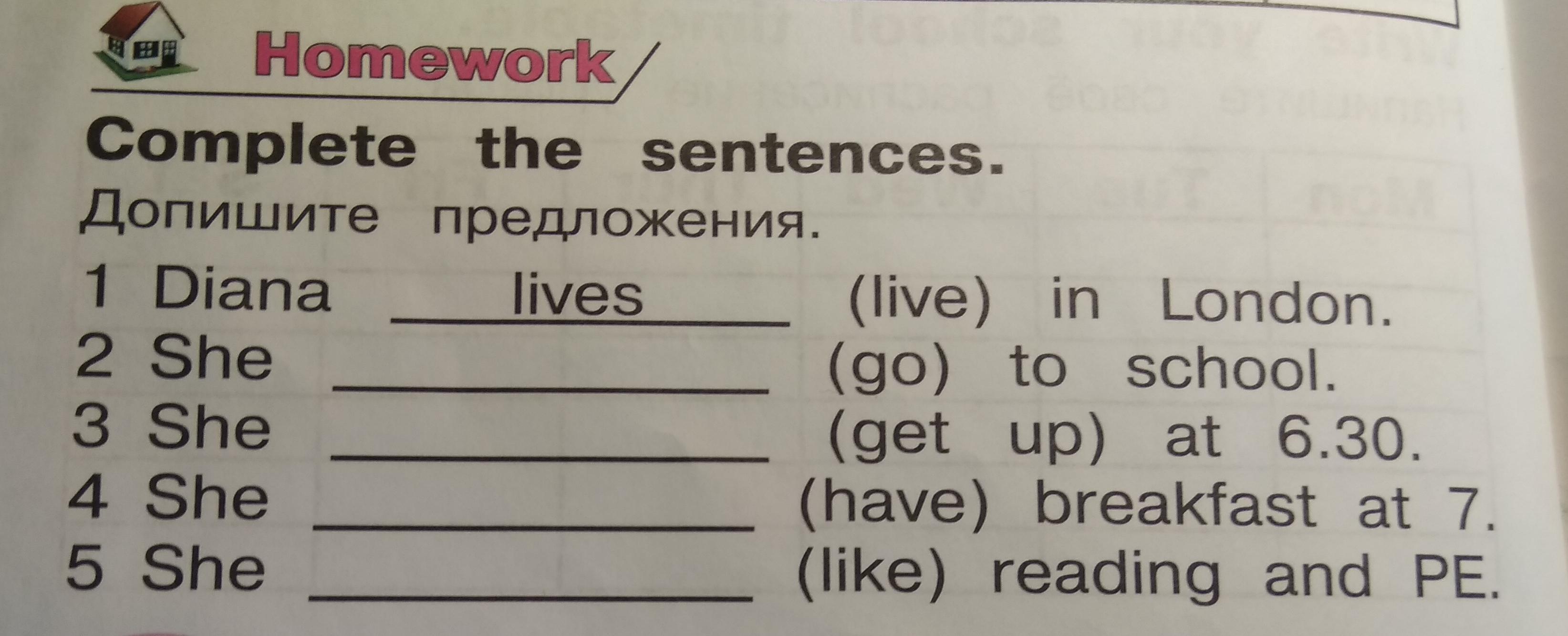 Здесь необходимо правильно применить Present Simple (Настоящее простое). Т.к. во всех 5 предложениях в начале стоит слово she (она), мы должны поставить глагол в той форме, в какой он ставится для слов 2-го лица (он, она, а также неодушевленных предметы). То есть мы прибавляем окончание "s". Было go, стало goes (добавляем после "о" еще и "е", потому что глагол go заканчивается на гласную). Было get up, стало gets up