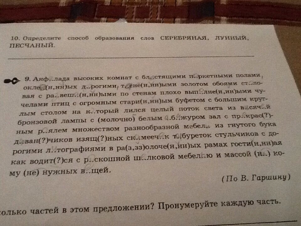 Анфилада высоких комнат с блестящими паркетными полами, оклеенных дорогими тесненными золотом обоями, столовая с развешанными по стенам, плохо выполненными чучелами птиц, с огромным старинным буфетом, с большим круглым столом, на который лился целый поток света из висячей бронзовой лампы с молочно белым абажуром, зал с прекрасным роялем, множеством разнообразной мебели из гнутого бука: диванчиков, изящных скамеечек, табуреток, стульчиков с дорогими литографиями в раззолоченных рамах; гостиная, как водится, с роскошной шелковой мебелью и массой никому не нужных вещей.
