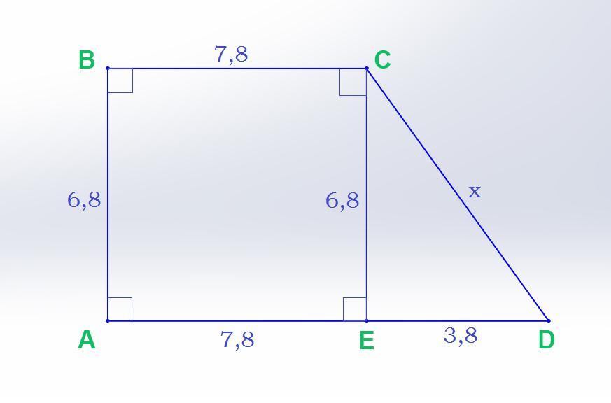 СD²=СЕ²+ЕD² ⇔ СD=√6,8²+3,8² ⇔ СD=√60,68м.