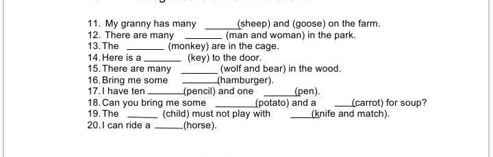Поставьте существительные в нужную форму: