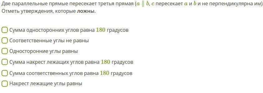 Вопросы по свойствам углов, образованных при пересечении двух параллельных прямых третьей прямой