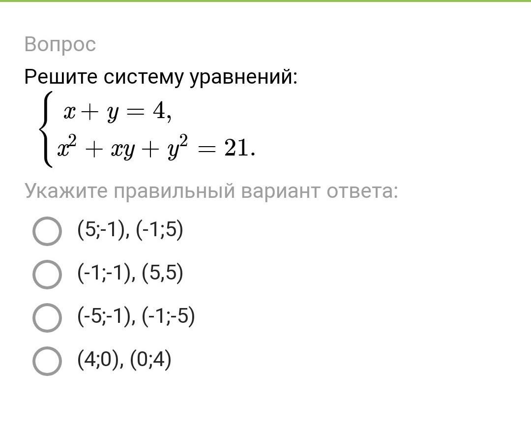 Правельный ответ (5;-1), (-1;5)