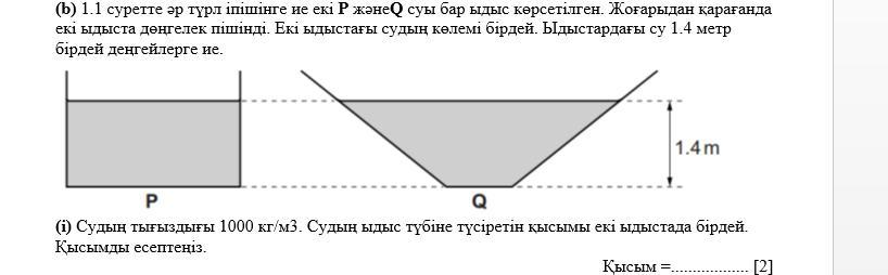 Плотность воды 1000 кг / м3. Давление, при котором вода опускается на дно сосуда, в обоих сосудах одинаковое.