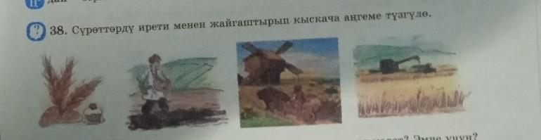 38. Сүрөттөрдү ирети менен жайгаштырып кыскача аңгеме түзгүлө.