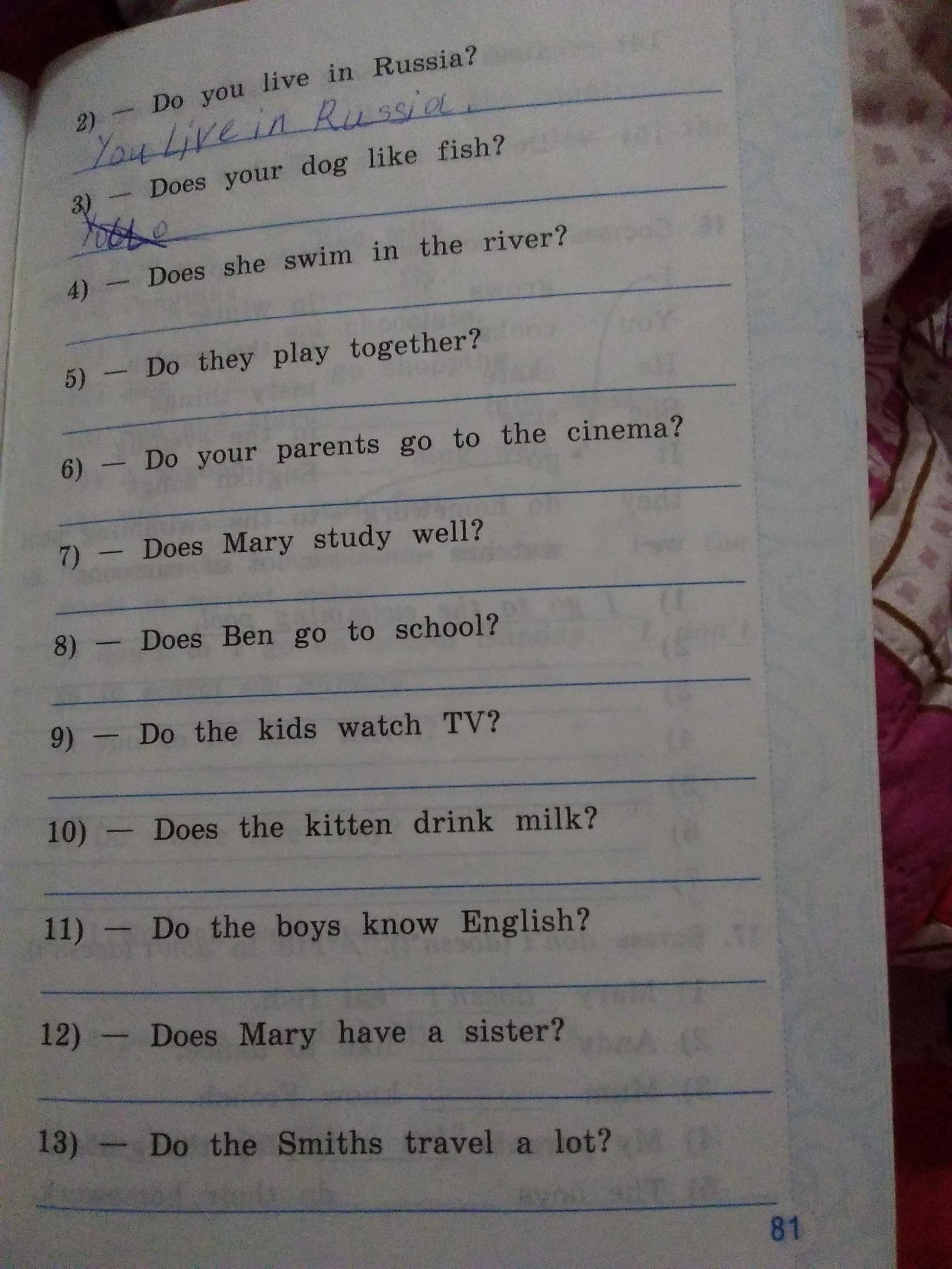 Английский язык 3 класс напиши краткие ответы Does she cook well? Yes, she does. No, she doesn't