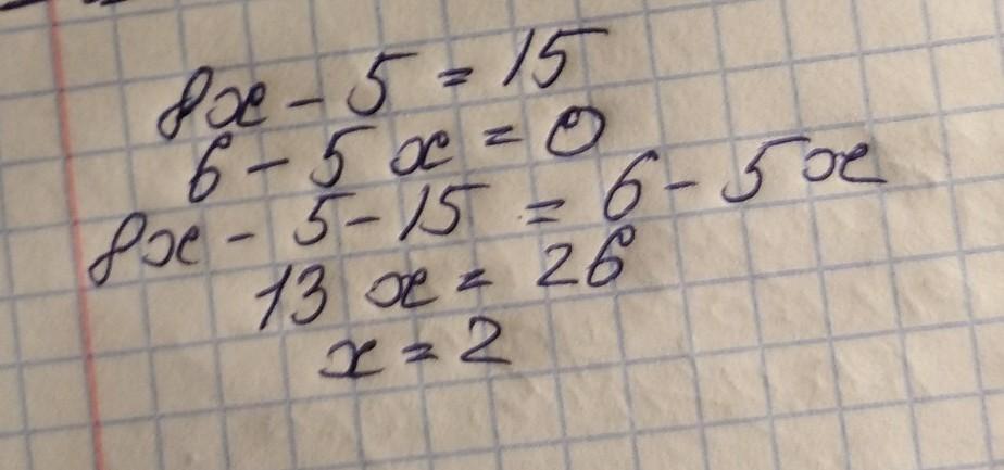 Найдите значение переменной, при которой значение выражения 8x-5 на 15 больше значения выражения 6-5x.