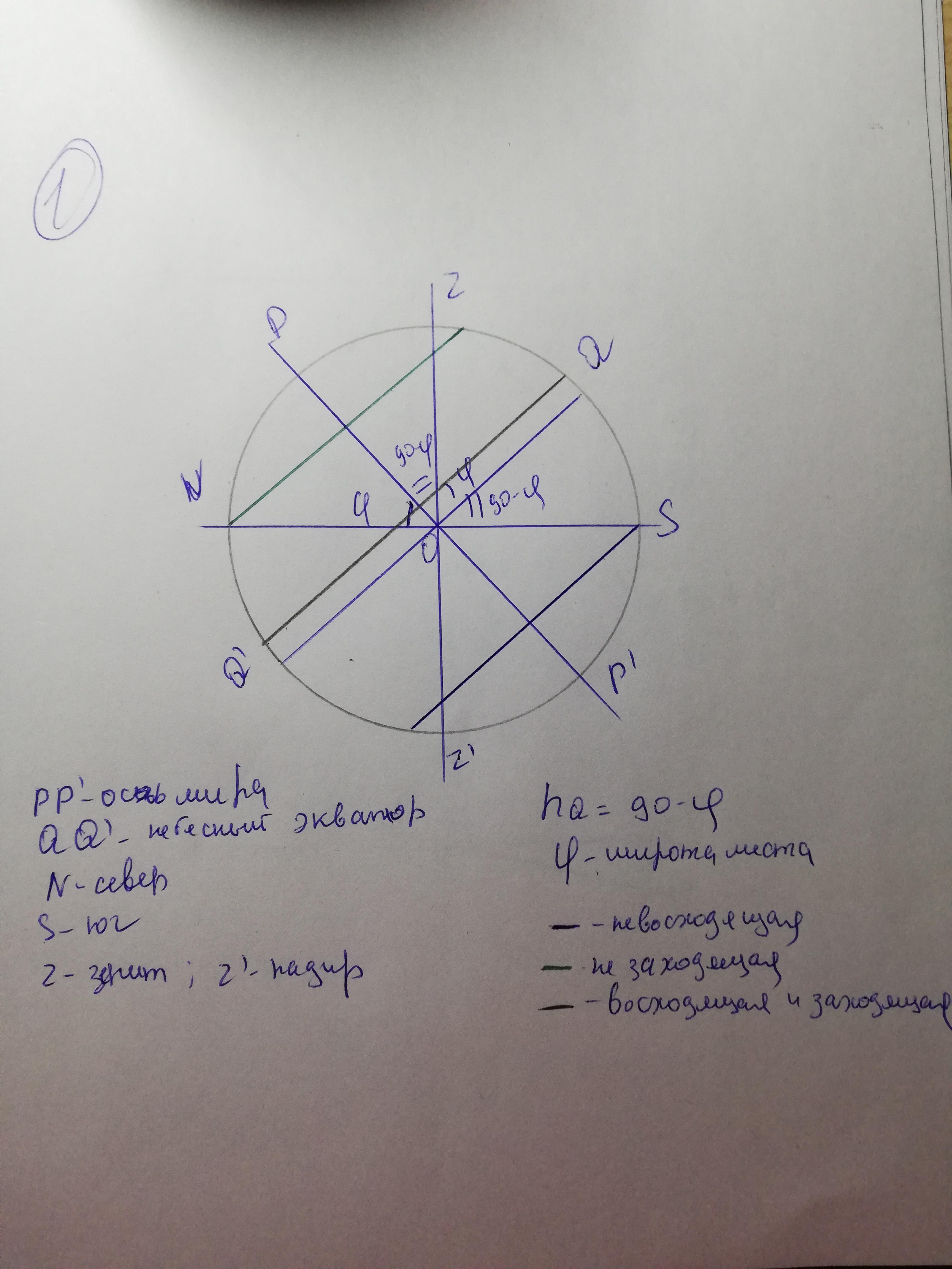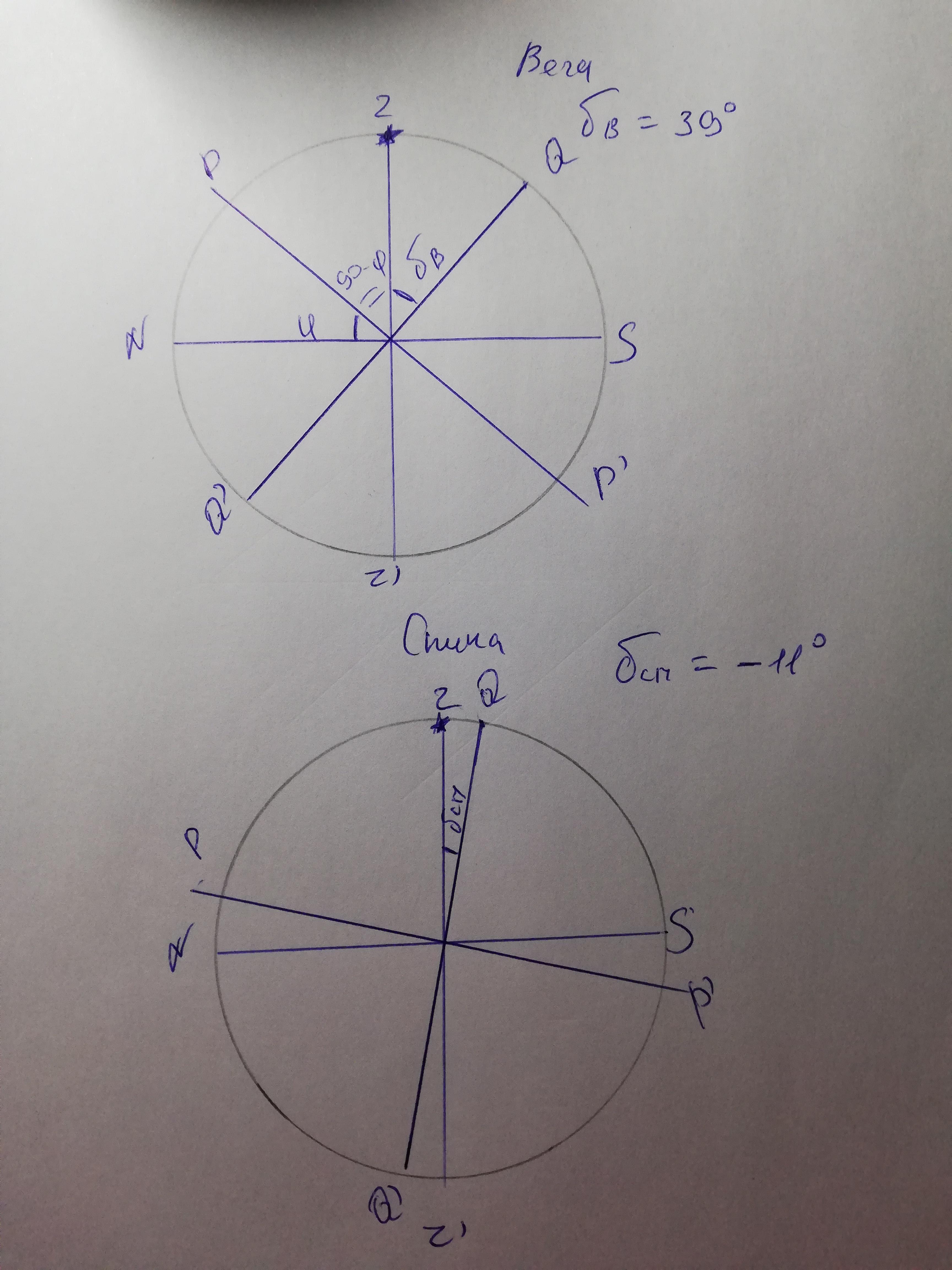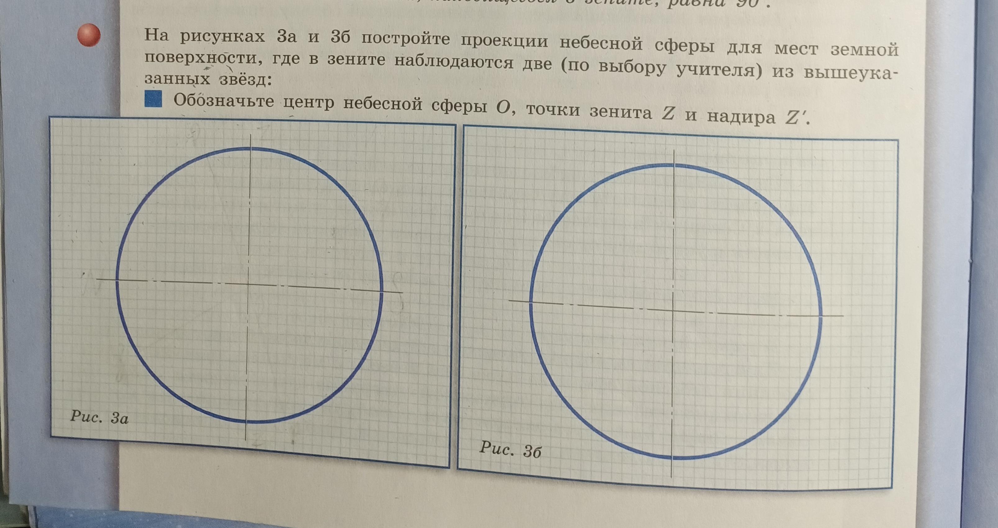 На рисунках 3а и 3б постройте проекции небесной сферы для мест земной поверхности, где в зените наблюдаются две звезды (пускай будут Вега и Спика).