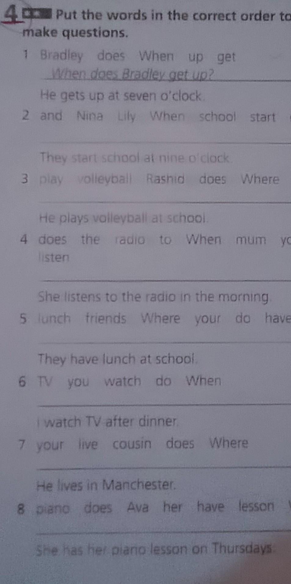 4 When does your mum listen the radio