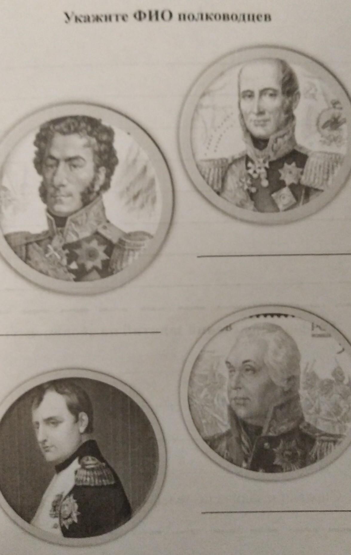 Пётр Иванович Багратион, Михаил Богданович Барклай-де-Толли, Наполеон I Бонопарт, Михаил Илларионович Кутузов.