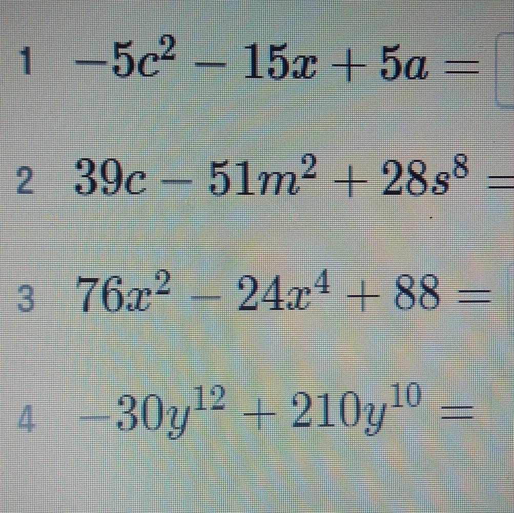 1. -5c² - 15x + 5a = (-5) · (с² + 3х - а);