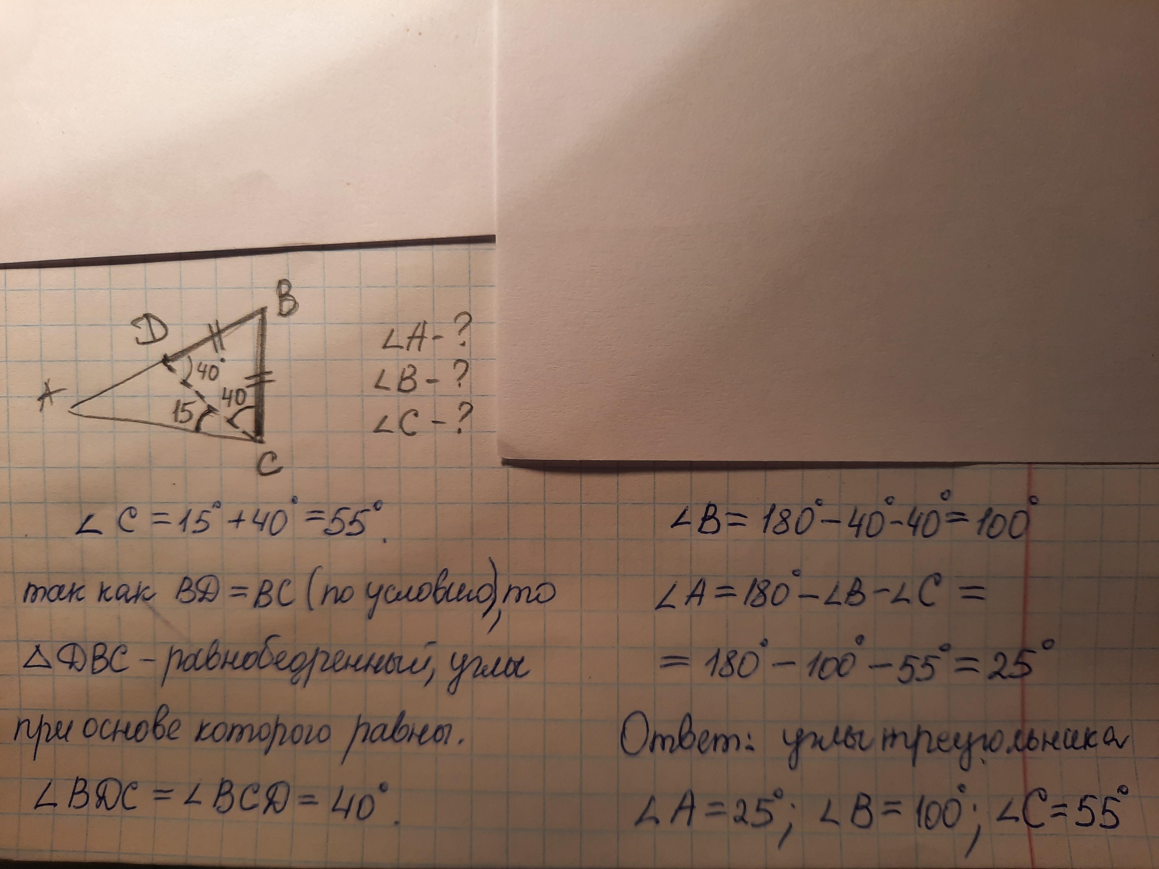 так, что BD = BC, ZACD = 15°, ZDCB = 40°. Найдите