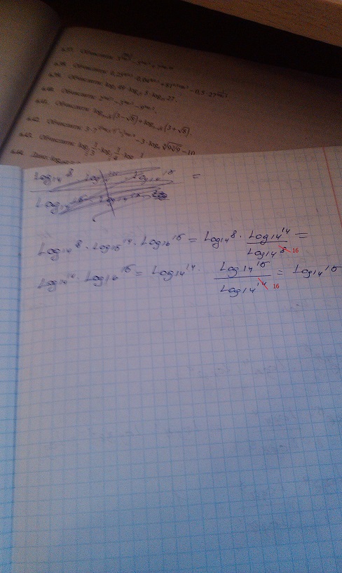 получим: ... = log(14)(8)*log(14)(14)*log(14)(15) / (log(14)(15)*log(14)(16)) =