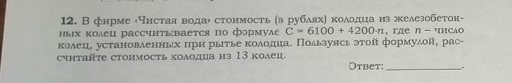 В формулу C=6100+2400n вместо n мы подставляем число колец,которые нам дали в конце задачи.Итак,C=6100+2400*13=37300