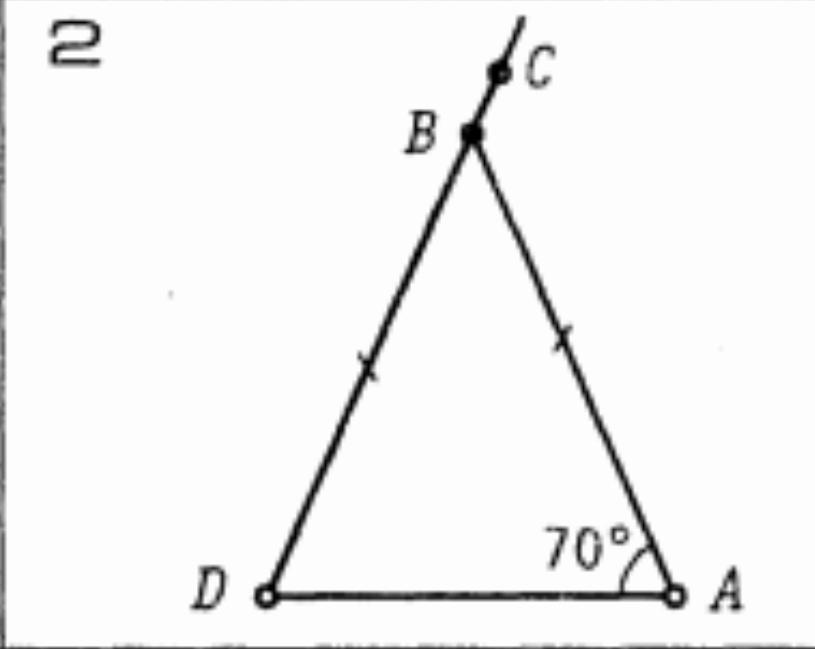- 2) <B=180°-(<A+<D)=180°-(70°+70°)=40°