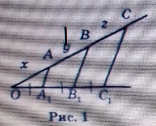 За теоремою про пропорційні відрізки: якщо паралельні прямі, які перетинають сторони кута, відтинають на одній його стороні рівні відрізки, то вони відтинають рівні відрізки й на другій його стороні- маємо: х=у=z, так як ОА1=А1В1=В1С1 та AA1 || BB1 || CC1.
