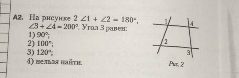 Так как углы 3 и 4 равны, а 200°/2 = 100°
