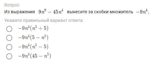 9n⁹ - 45n⁴ = -9n⁴(-n⁵ + 5) или -9n⁴(5 - n⁵)