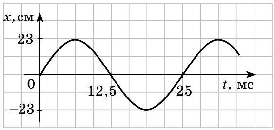 По графику, приведенному на рисунке, определите амплитуду и период колебаний тела. Вычислите частоту и циклическую частоту колебаний тела; запишите уравнения колебаний; найдите смещение тела в фазе π/2 рад.