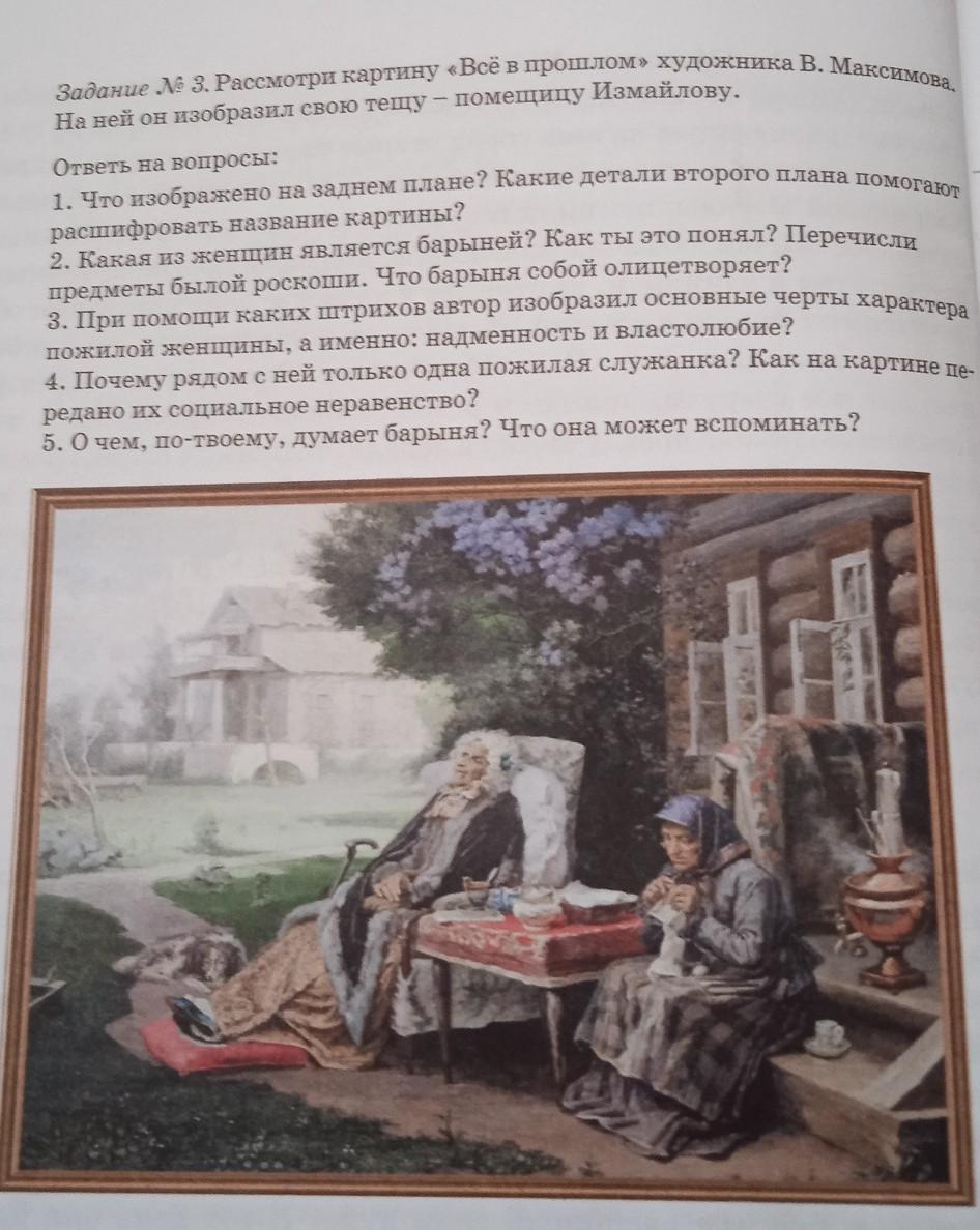 2. Я думаю что барыней была старуха, которая сидит на белой кресле. Я поняла по её одежде. Она олицетворяет тишину и покой.