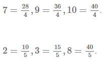 Ответ: 7=28/4, 9=36/4, 10=40/4