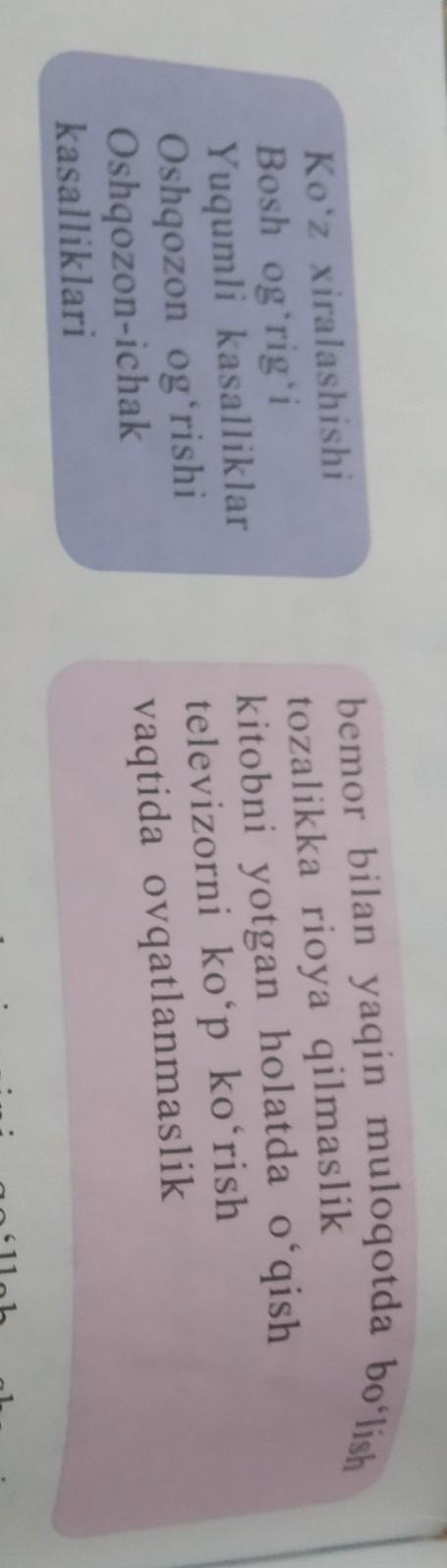 5- mashq. Birinchi ustunda berilgan kasalliklarning sabablarini ikkinchi