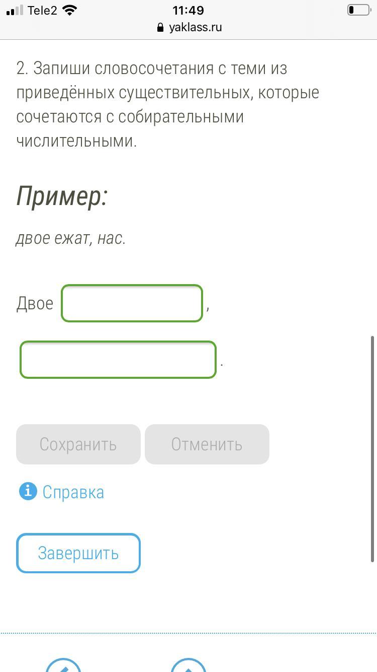 2. Запиши словосочетания с теми из приведённых существительных, которые сочетаются с собирательными числительными.