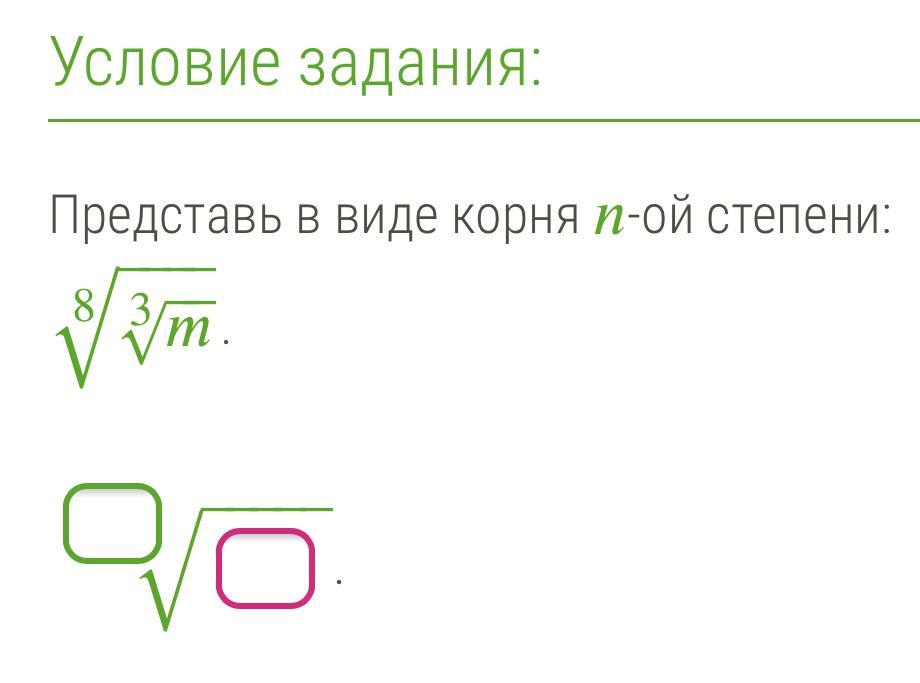 \displaystyle  \sqrt[8]{\sqrt[3]{m } } = \sqrt[24]{m}