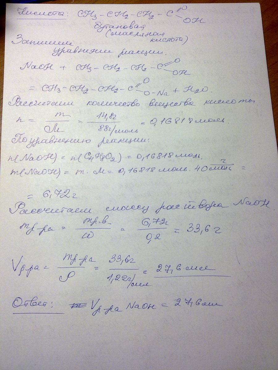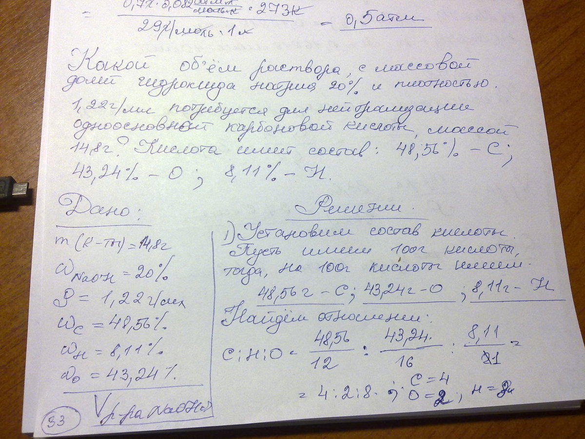 Какой объём раствора с массовой долей гидроксида натрия 20% и плотностью 1,22г/мл потребуется для нейтрализации одноосновной карбоновой кислоты массой 14,8г??Кислота имеет состав: углерод (массовая доля 48,56%), кислород (43,24%), водород (8,11 %)