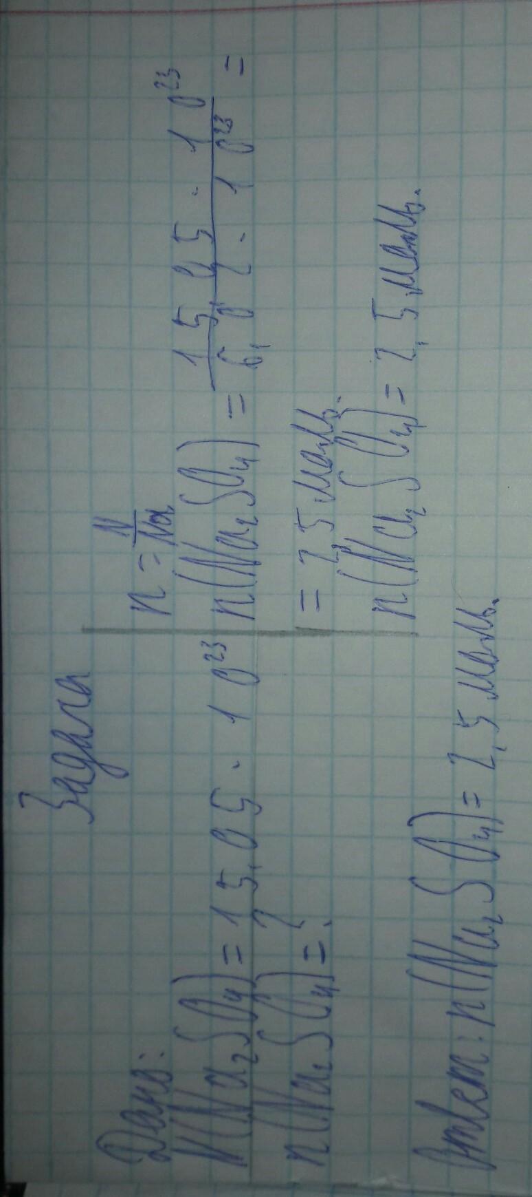 Вычисли химическое количество сульфата натрия Na2SO4, в котором содержится 15,05⋅10^23 атомов серы.