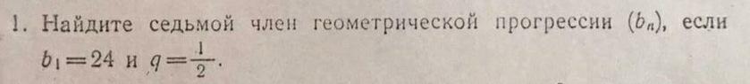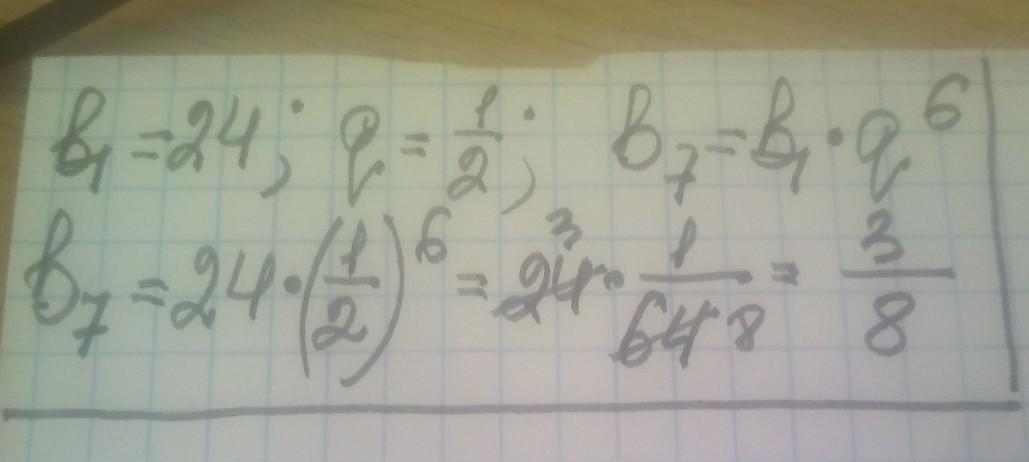 Ответ: b7=b1*q^6=24/(2^6)=24/64=12/32=3/8=0,375.