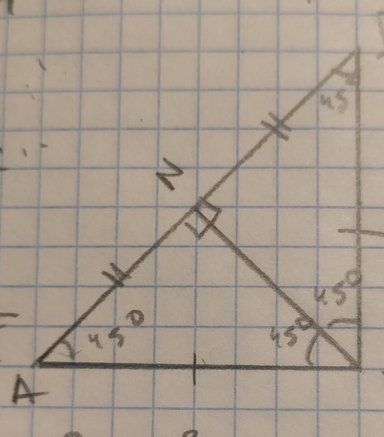 тут равнобедренные треугольники так как уголA=180-(90+45)=45
