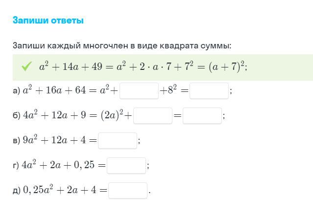 а) a²+2*a*8+8²=(a+8)²