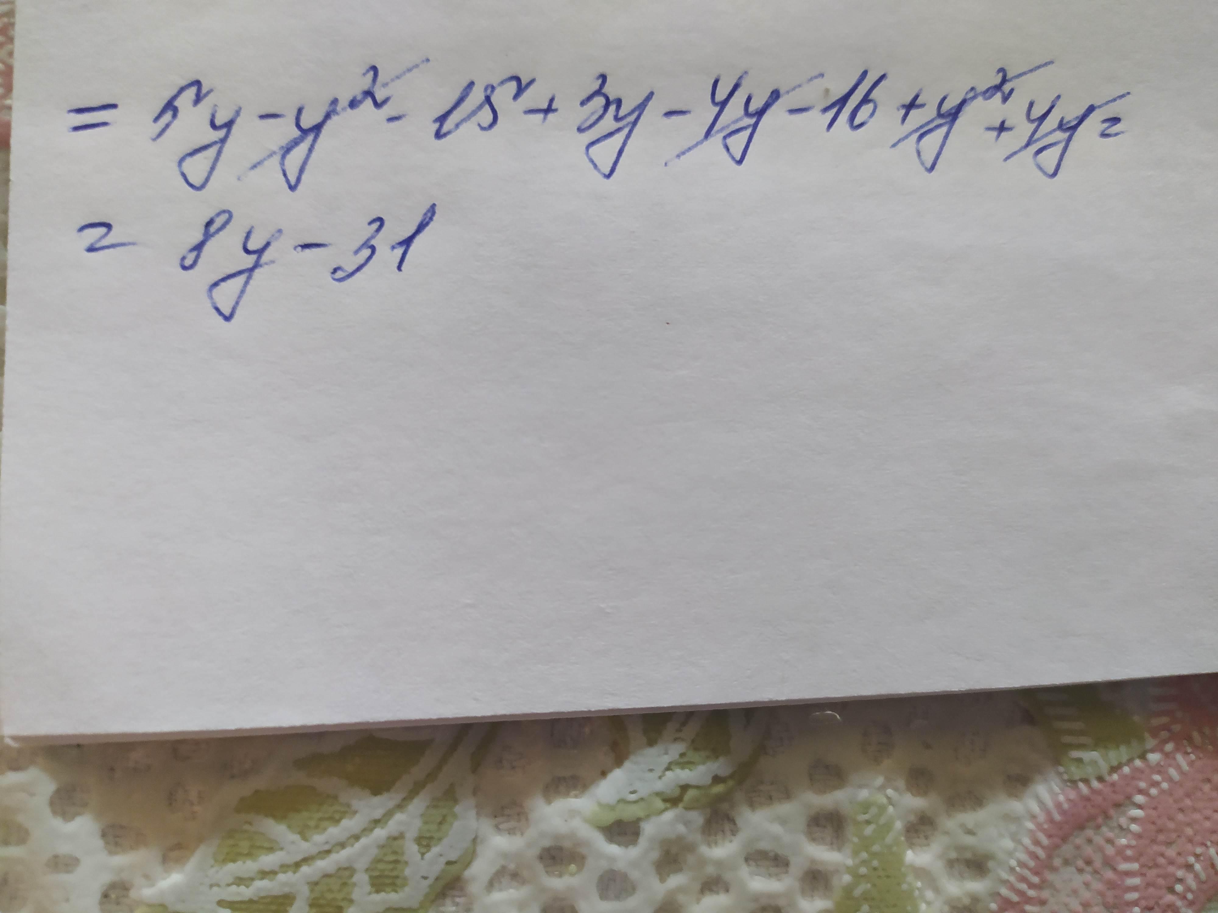 (y-3)(5-y)-(4-y)(y+4)= 8y-31