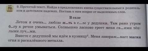9. Прочитай текст. Найди в предложениях имена существительные и родитель
