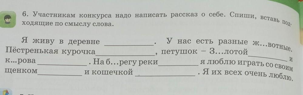 Я живу в деревне Волна. У нас есть разные животные. Пёстренькая курочка Ряба, петушок - Золотой гребешок и корова Бурёнка. На берегу реки Волга я люблю играть со своим щенком Мухтаром и кошечкой Муркой. Я их всех очень люблю.