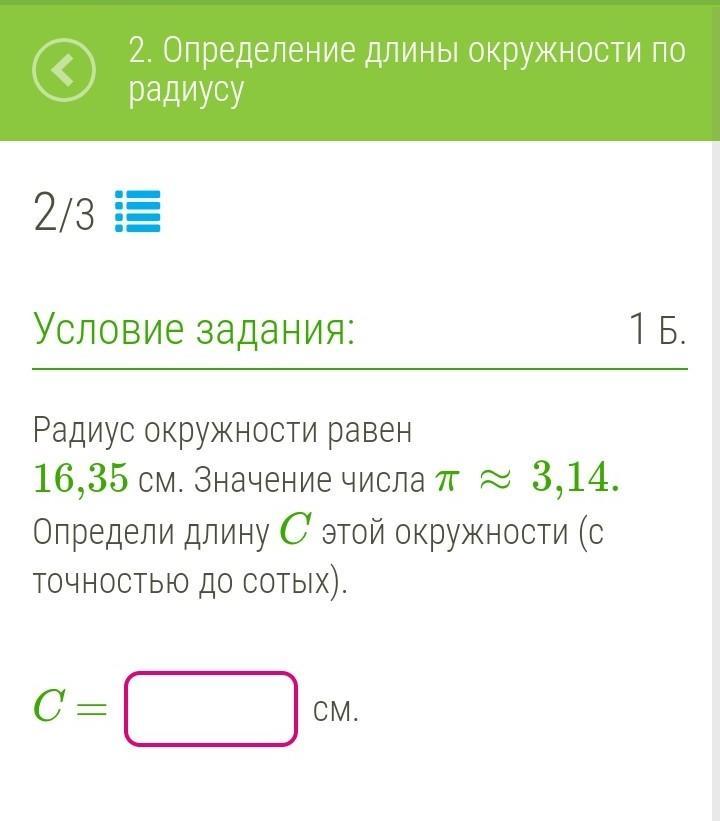 Формула: C=2пr=2*3.14*16.35= 102.68