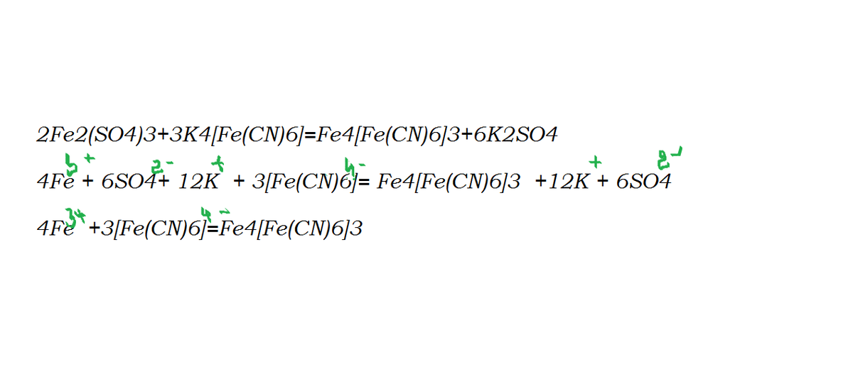 2Fe2(SO4)3+3K4[Fe(CN)6]=Fe4[Fe(CN)6]3+6K2SO4