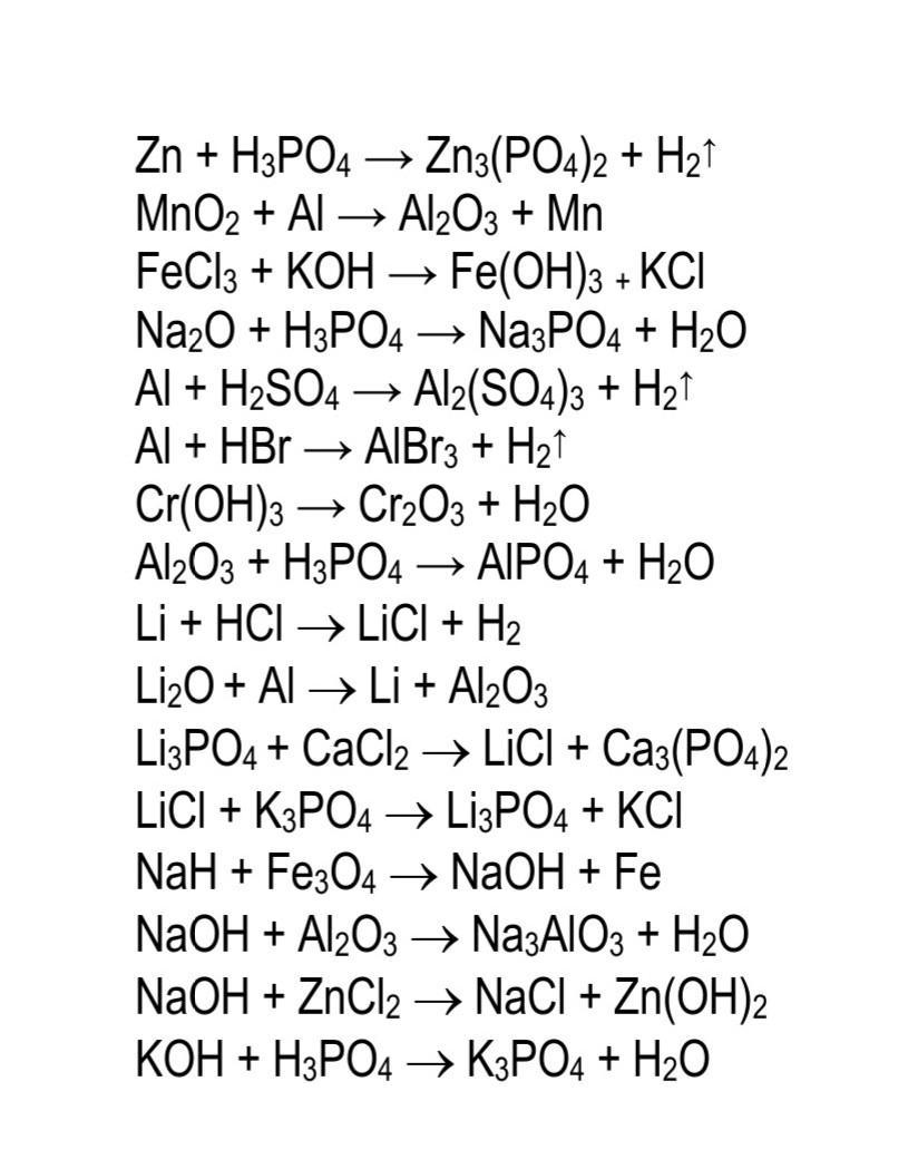 1. 3Zn+2H3PO4 = Zn3(PO4)2+ 3H2