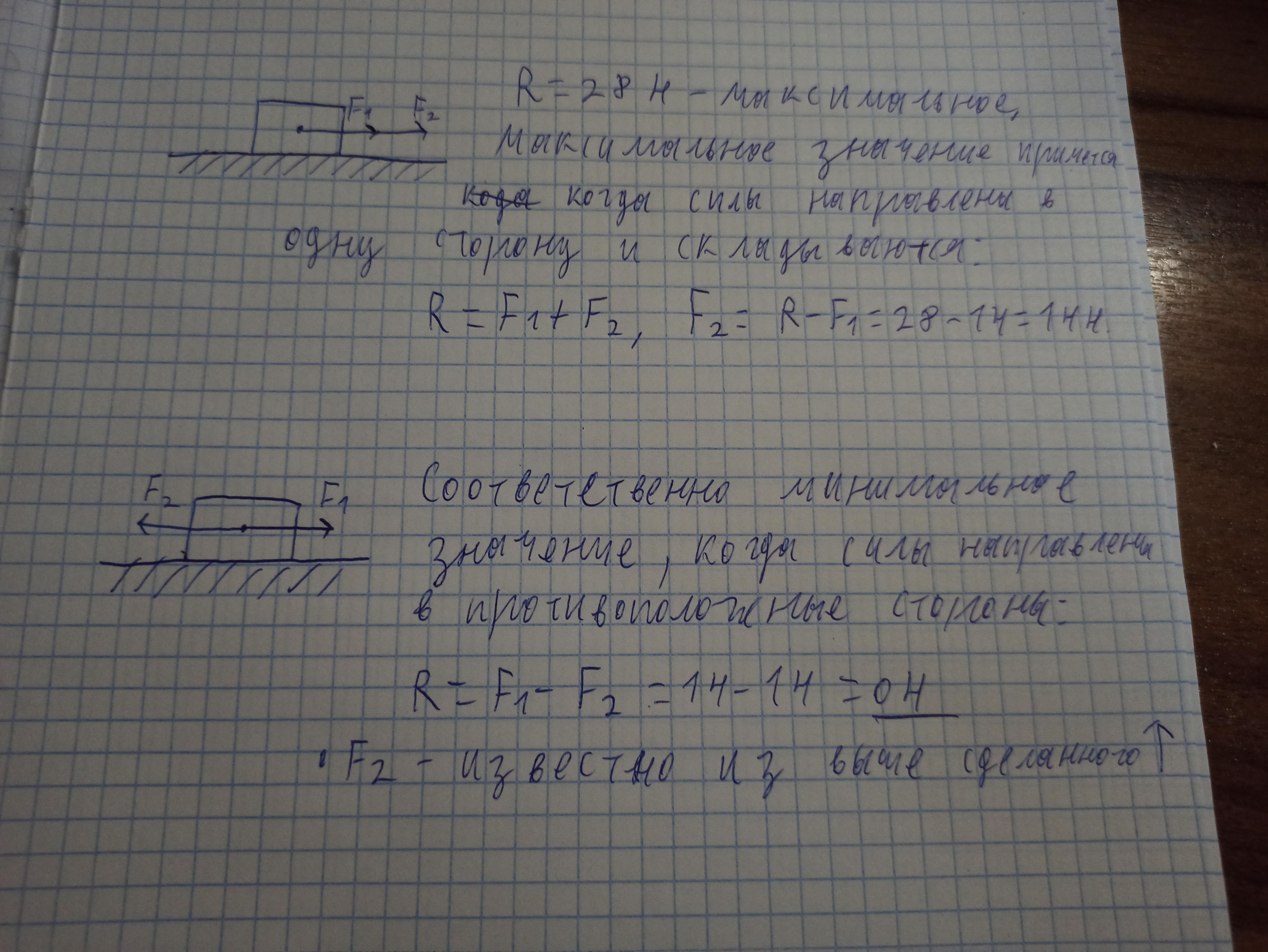 Максимальное значение равнодействующей этих сил R = 28 H.