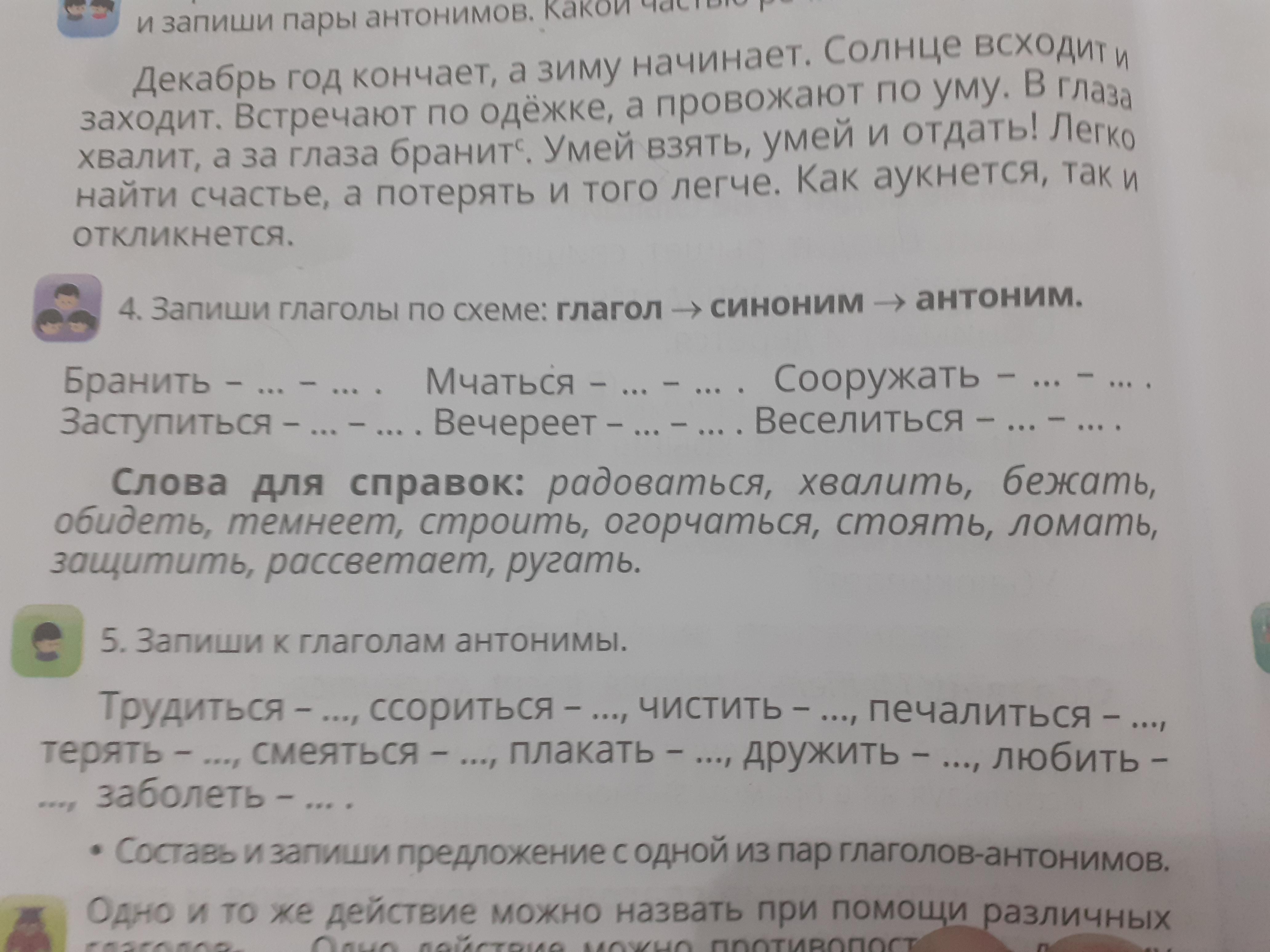 бранить - ругать - хвалить. мчаться - бежать - стоять. сооружать - строить - ломать. заступиться - защитить - обидеть. вечереет - темнеет - рассветает. веселиться - радоваться - огорчаться.