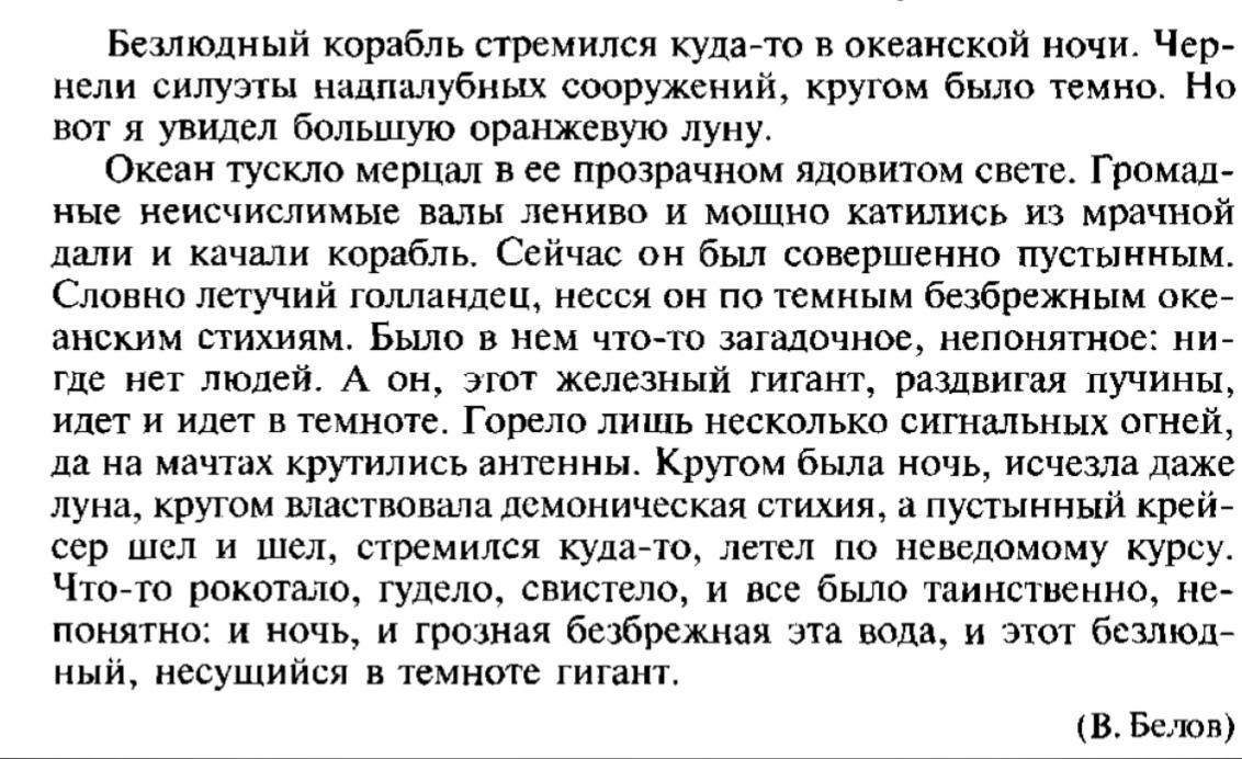 Кругом была ночь, исчезла даже луна, кругом властвовала демоническая стихия, а пустынный крейсер шел и шел, стремился куда-то, летел по неведомому курсу.