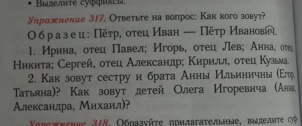 1. Ирина Павловна; Игорь Львович; Анна Никитична; Сергей Александрович; Кирилл Кузьмич.