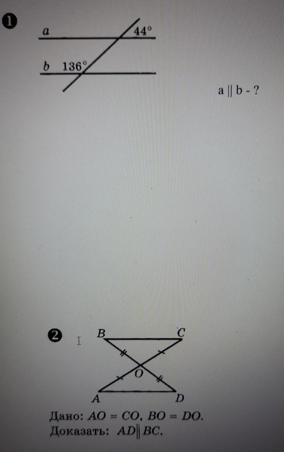 2) Треугольники равны по двум равным сторонам и углу между ними, следовательно прямые параллельны чтд.