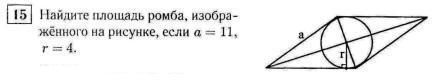 Площадь ромба равна произведению радиуса вписанной окружномти и длины стороны на 2 то есть 2 х 11 х 4 = 88