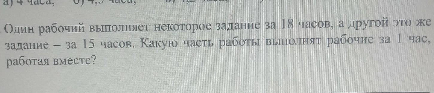 1/18 + 1/15 = (5 + 6)/90 = 11/90 - часть задания, выполняемая двумя рабочими в час, вместе.