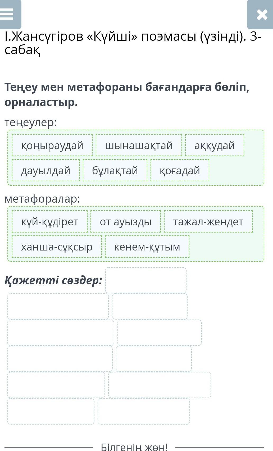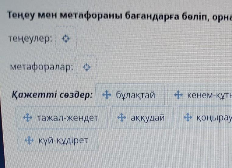 Теңеу мен метафораны бағандарға бөліп, орналастыр.
