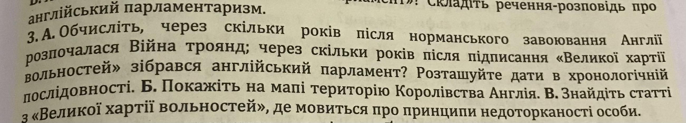 Обчисліть, через скільки років після норманського завоювання Англії розпочалася Війна троянд : через скільки років після підписання Великої хартії вольносте зібрався англійськи парламент ? Розташуйте дати в хронологічній послідовності