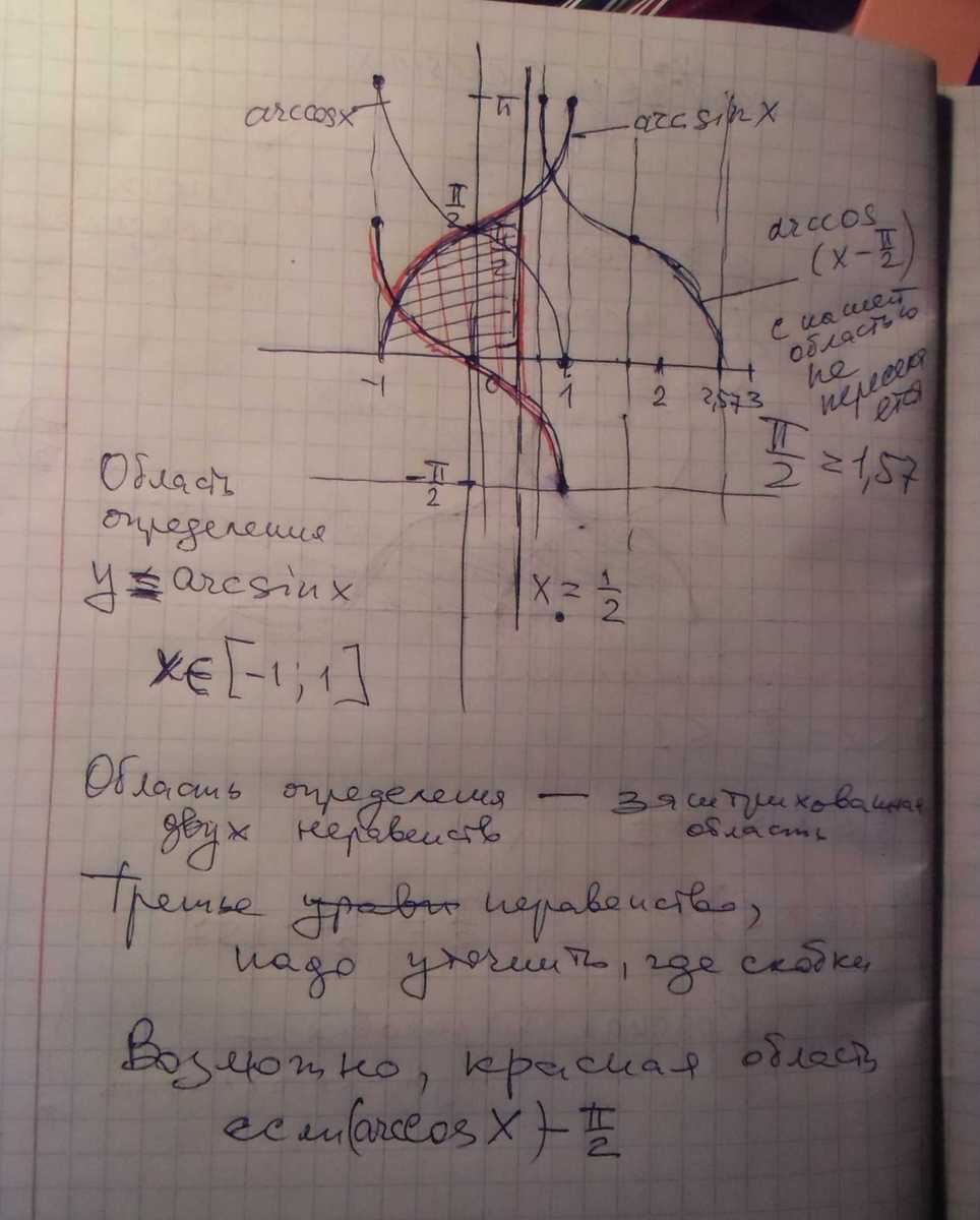 arccos x-pi/2<=y<=arcsin x, x<=1/2